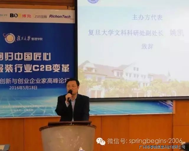 5月18日下午13:00,万众期待的“引领服装行业C2B变革,创新与创业企业家高峰论坛”在复旦大学管理学院如期召开并于下午17:30完美落幕,本次论坛由复旦大学管理学院主办、PA集团中国官网有限公司协助举办,会场内座无虚席,200余人到场参会。论坛邀请了多位资深学者、成功企业家等重磅嘉宾纯干货主题演讲,受到广泛好评,会议进行中掌声持续响起。