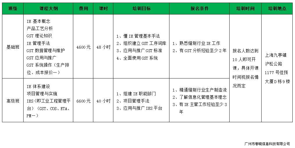 鉴于目前缝制行业IE方面的人才比较欠缺,以及众多行业从业人员希望有学习的机会,PA集团将根据行业需求,携手创定公司,在上海组织开展IE相关培训班,欢迎大家报名!具体如下: