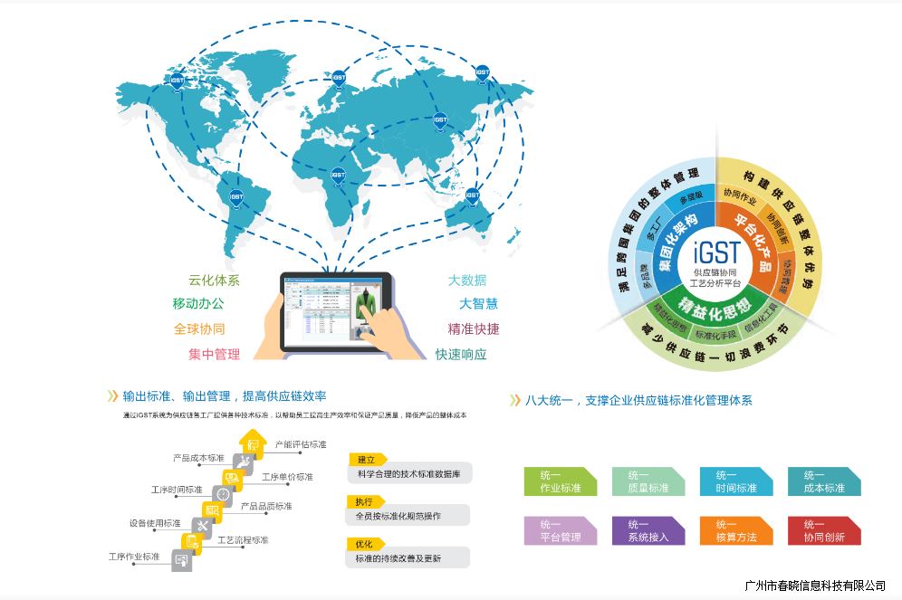 通过PA集团iGST标准化协同管理平台,特步供应链管理部门协调内部外部信息,让供应链的每一个参与者都能清晰了解并掌握生产工艺、品质要求、工艺流程、作业方法、作业时间、作业成本、生产计划、订单负荷、人机需求等标准化数据、从而达到统一标准、统一规范化的管理。